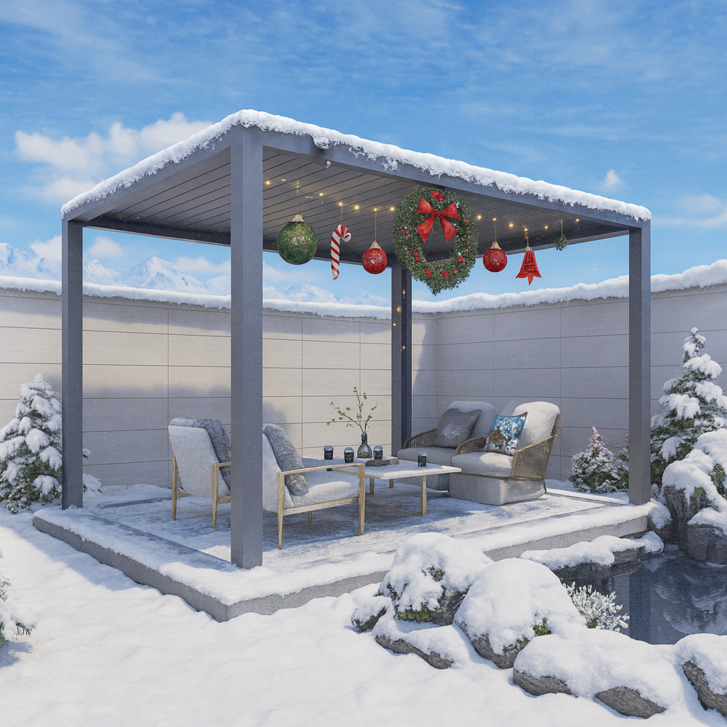 Decorating your pergola for Christmas is all about leaning into its open-air vibe to whip up a cozy